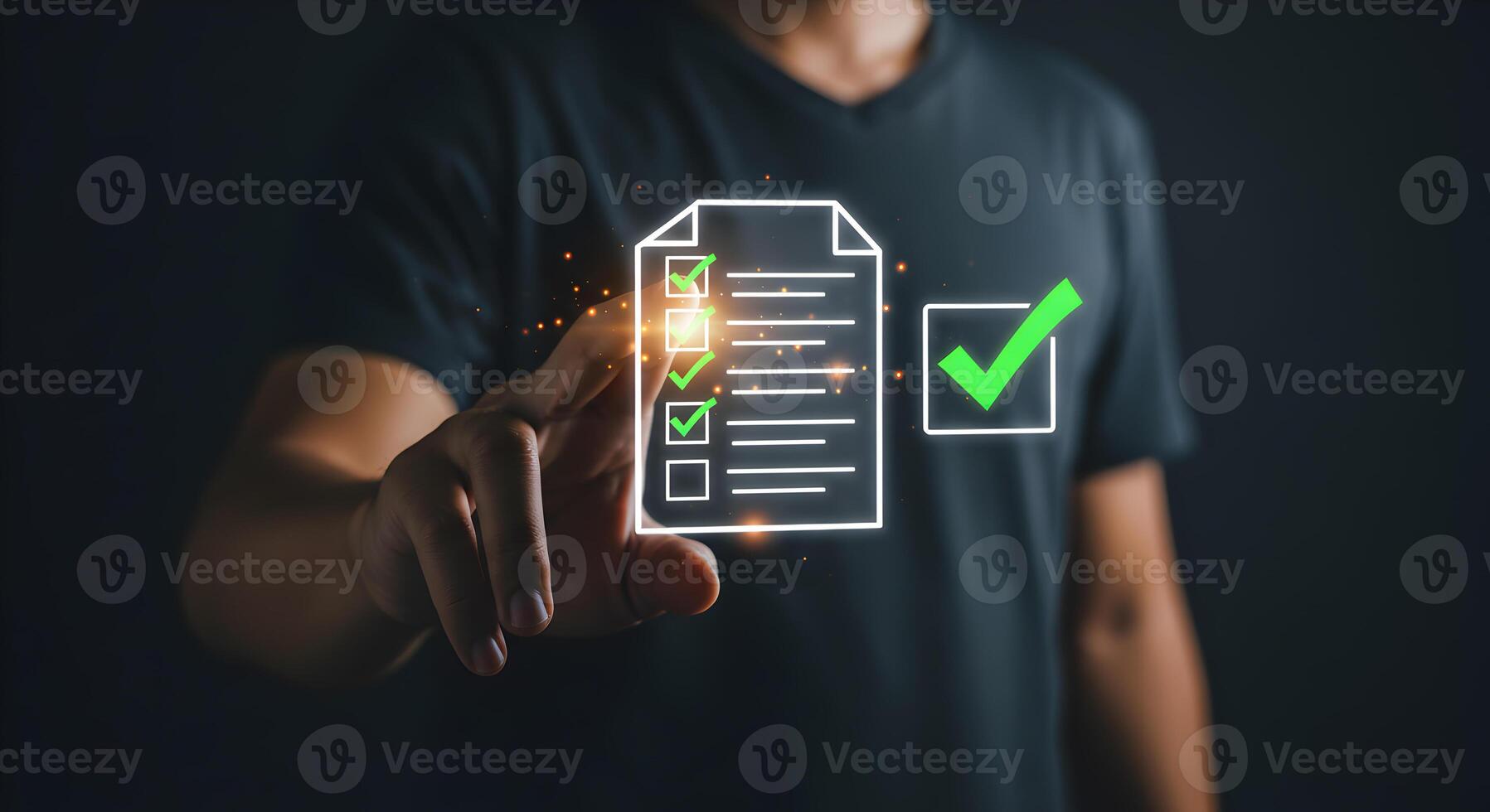 Person checking a digital checklist completing tasks and achieving goals in a dark modern setting symbolizing productivity and success Pro Photo