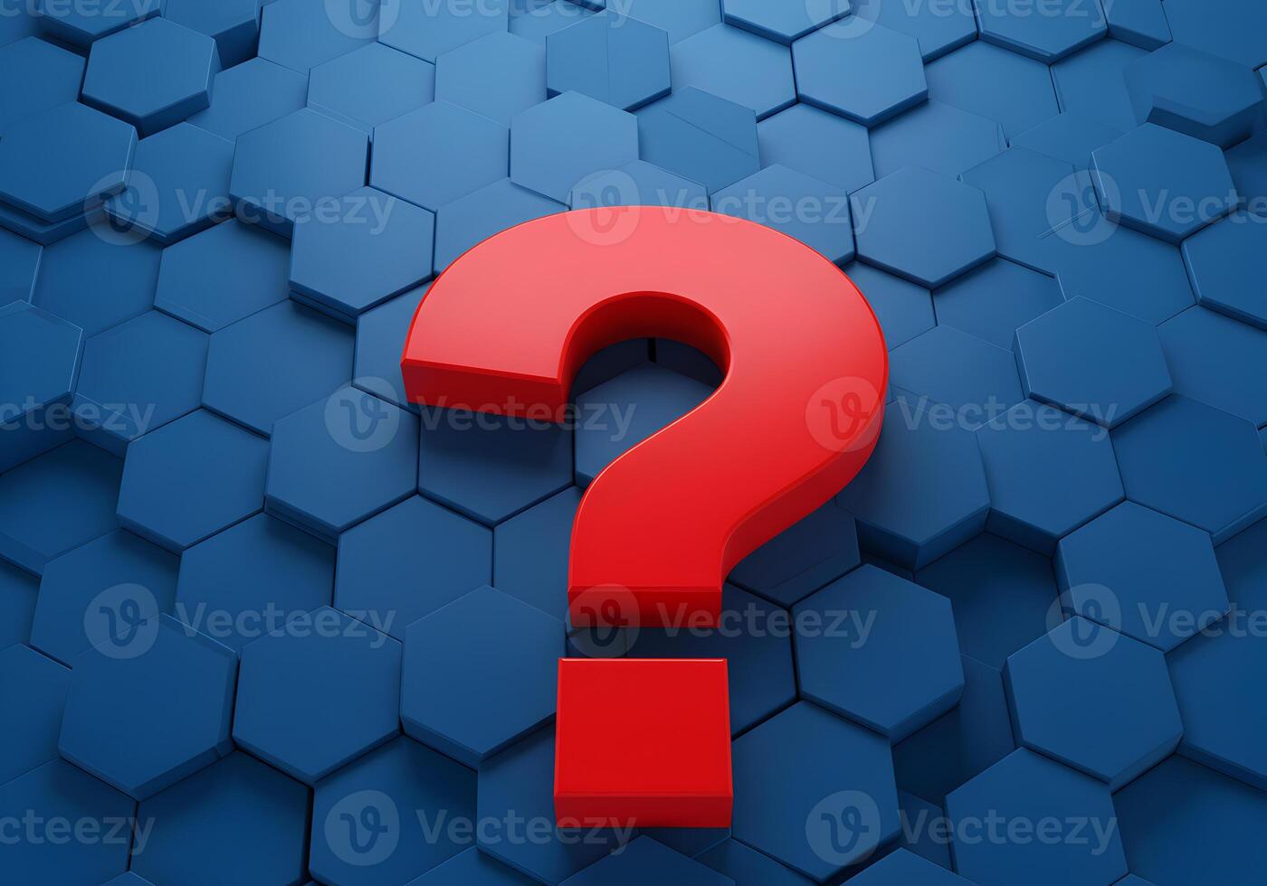 Red question mark symbol on a blue hexagonal background representing uncertainty doubt questions and the search for answers in a technological or abstract context This 3D illustration is ideal for con Pro Photo