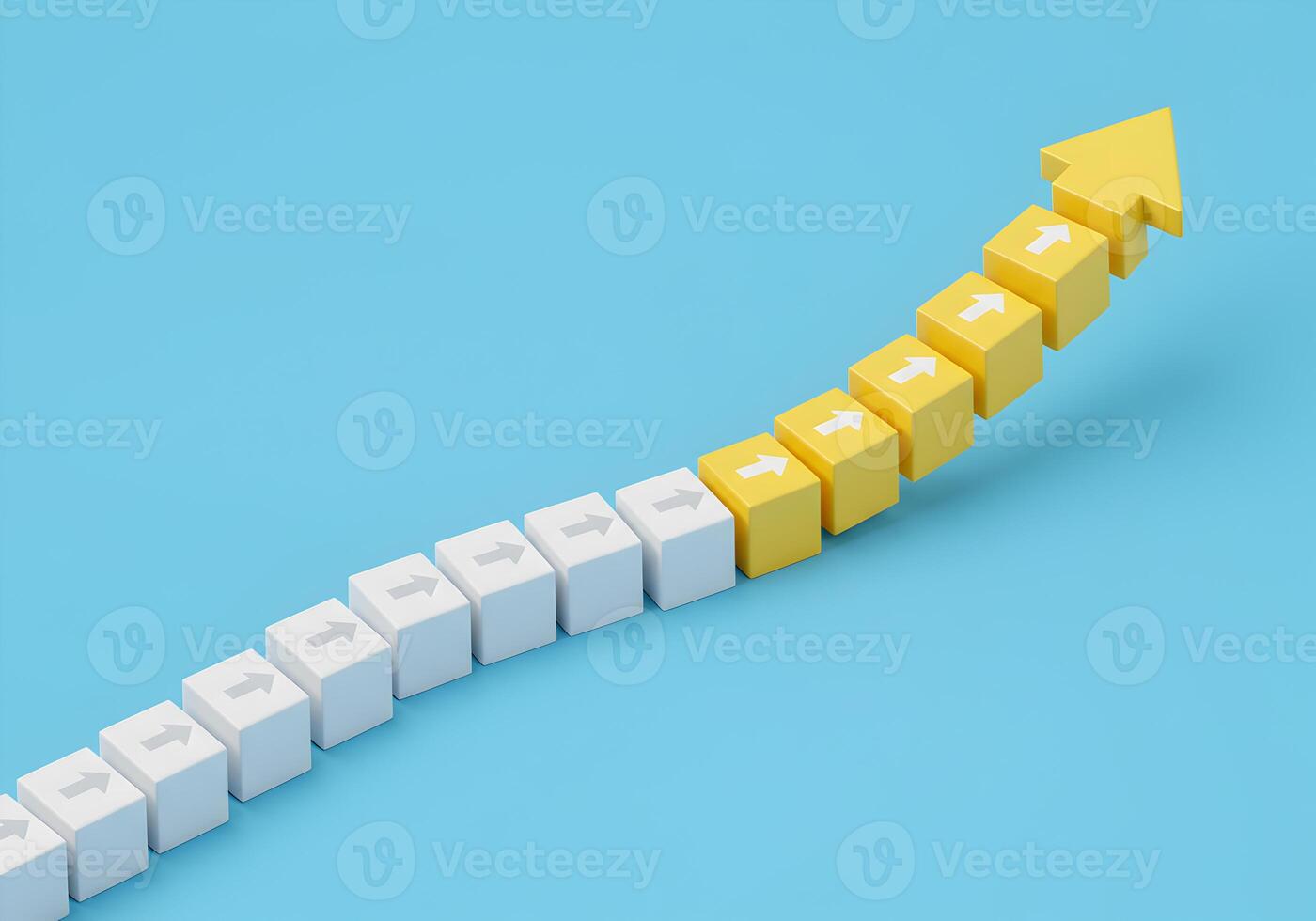 Abstract 3D rendering of yellow blocks forming an upward arrow symbolizing growth progress and success against a light blue background This image represents concepts of development advancement and ach Pro Photo