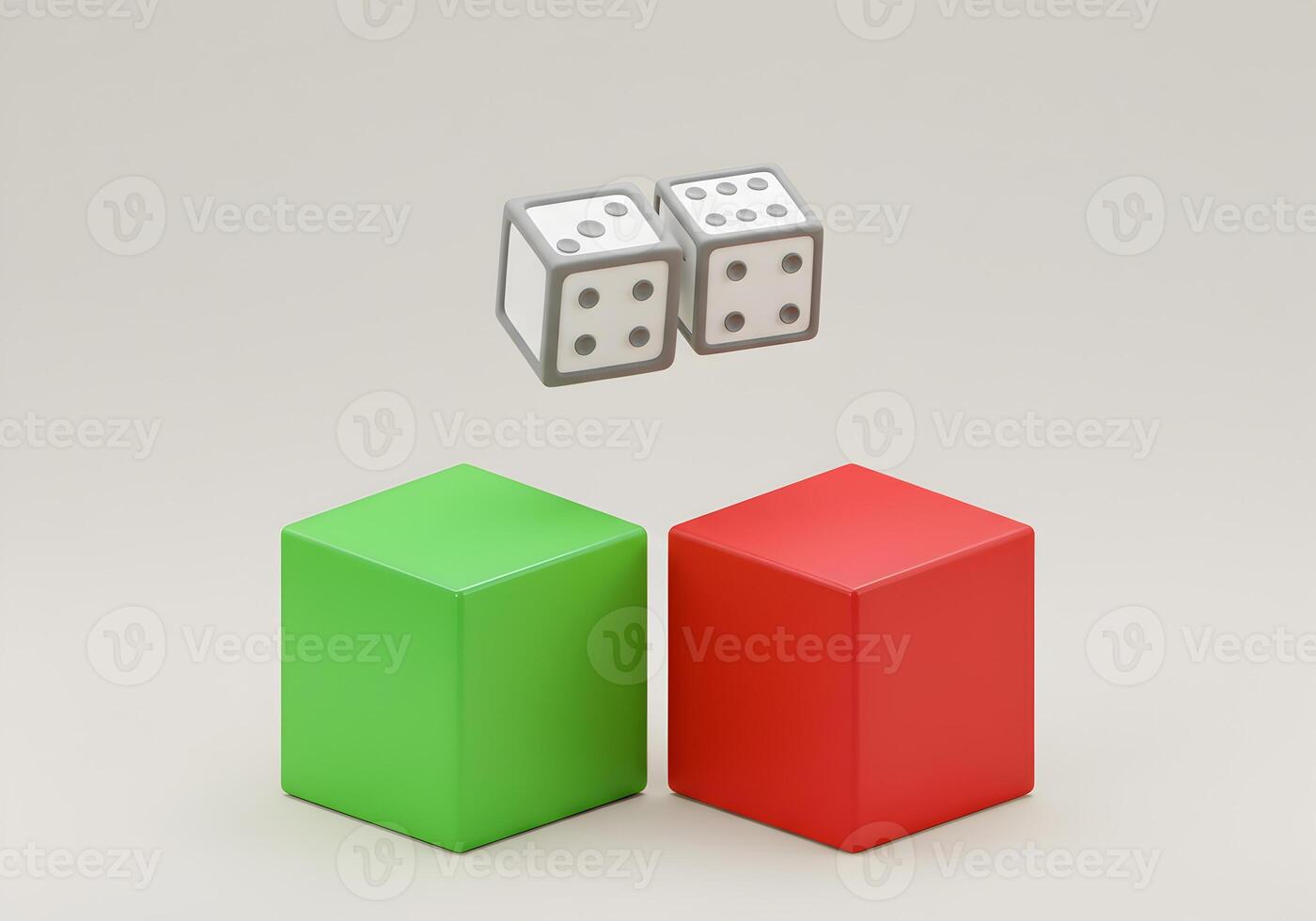 Two dice falling over green and red cubes concept of decision making risk chance opportunity and gambling The image is minimalistic and uses 3D rendering to create a clean and modern aesthetic ideal f Pro Photo