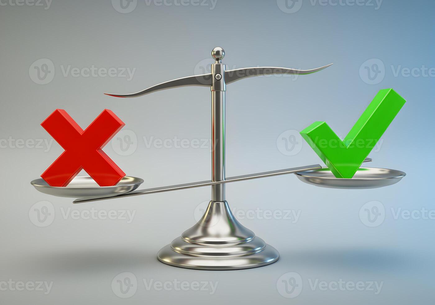 Red Cross and Green Check Mark Balancing on a Scale Representing Decision Making Right Choice and Weighing Options Concept of correct vs incorrect success vs failure and making the right decision Pro Photo