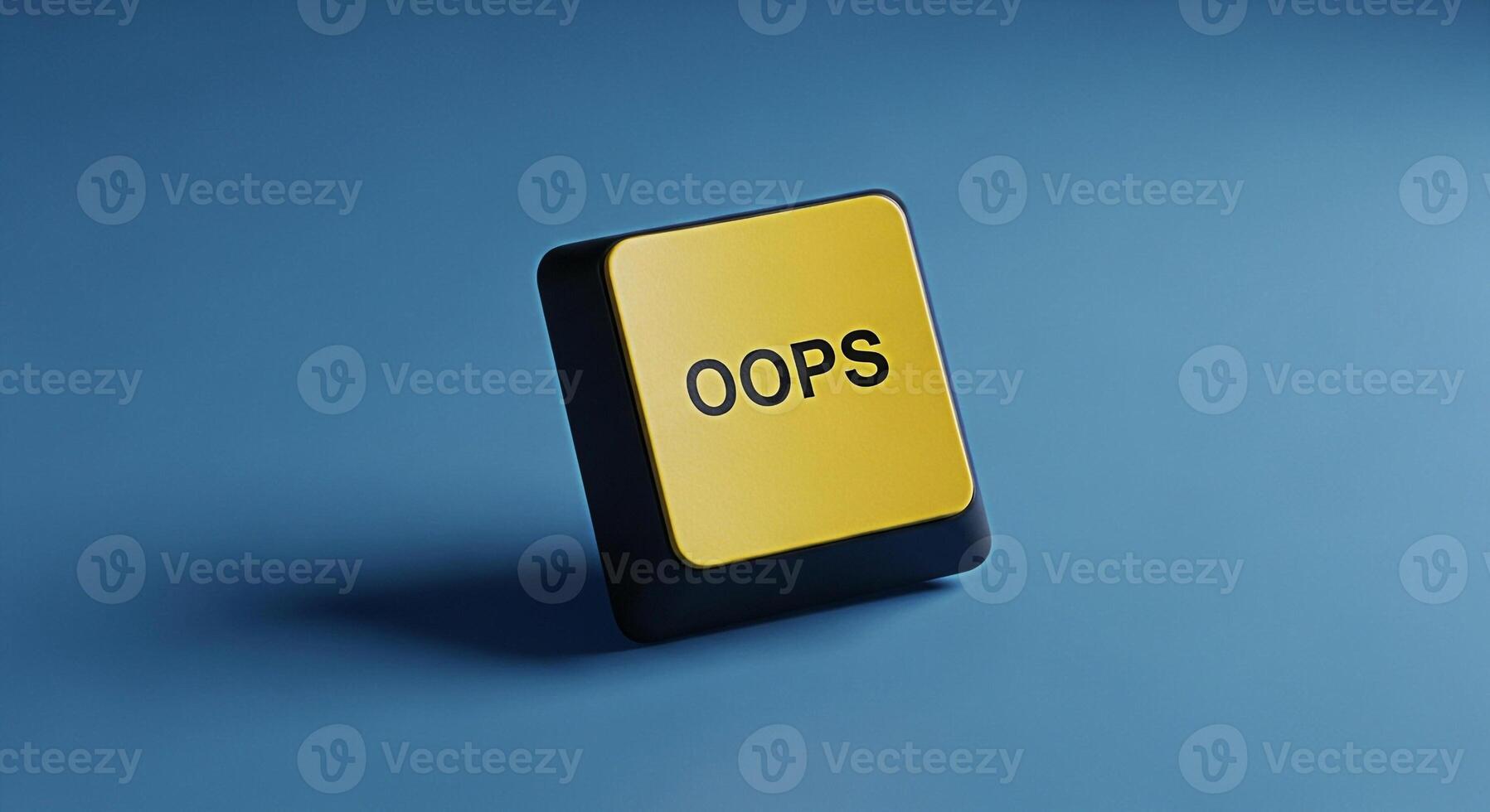 Yellow oops button on a blue background representing mistake error failure and correction concept Pro Photo