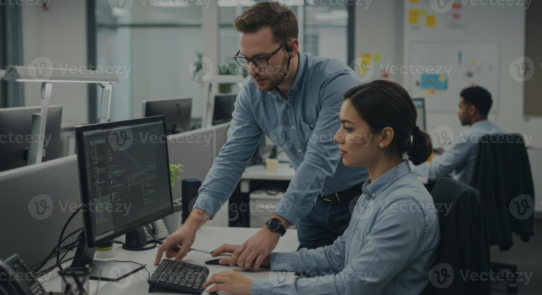 Software development team collaboration coding review mentorship program office environment working together Pro Photo