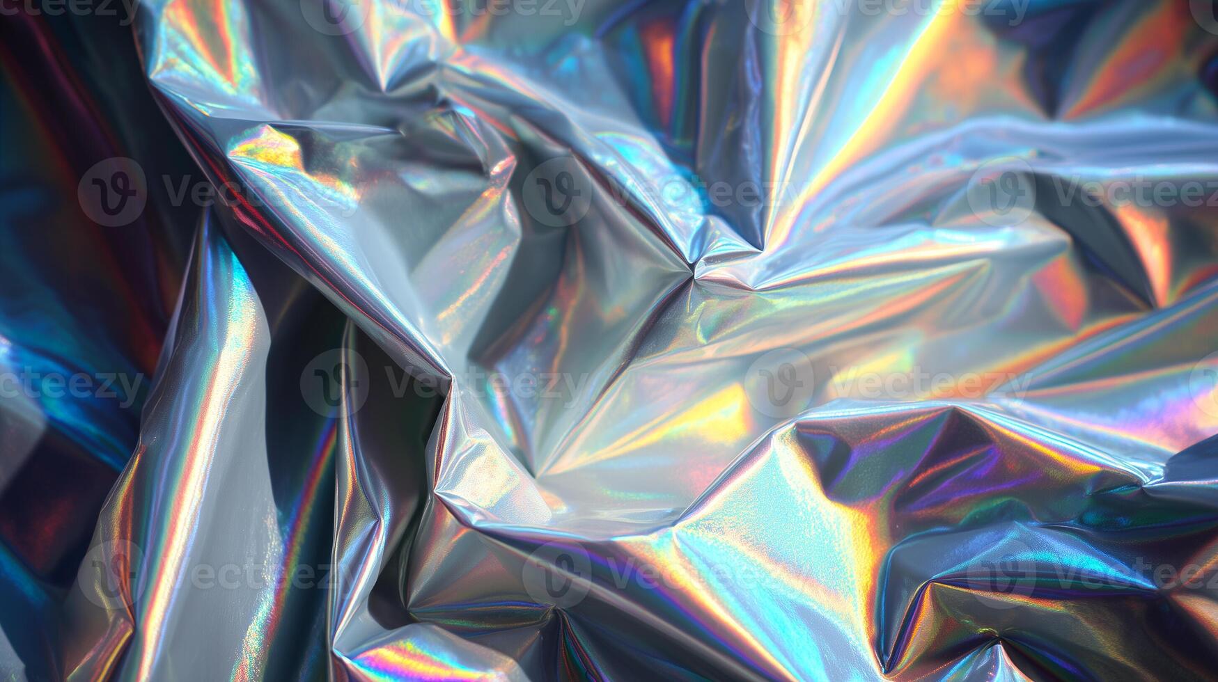 Iridescent foil texture with folds and creases reflecting light in a colorful display Pro Photo