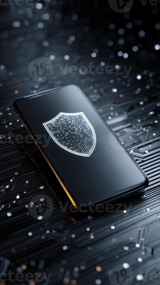 A smartphone displaying a digital shield on its screen for data protection and security concept design Pro Photo