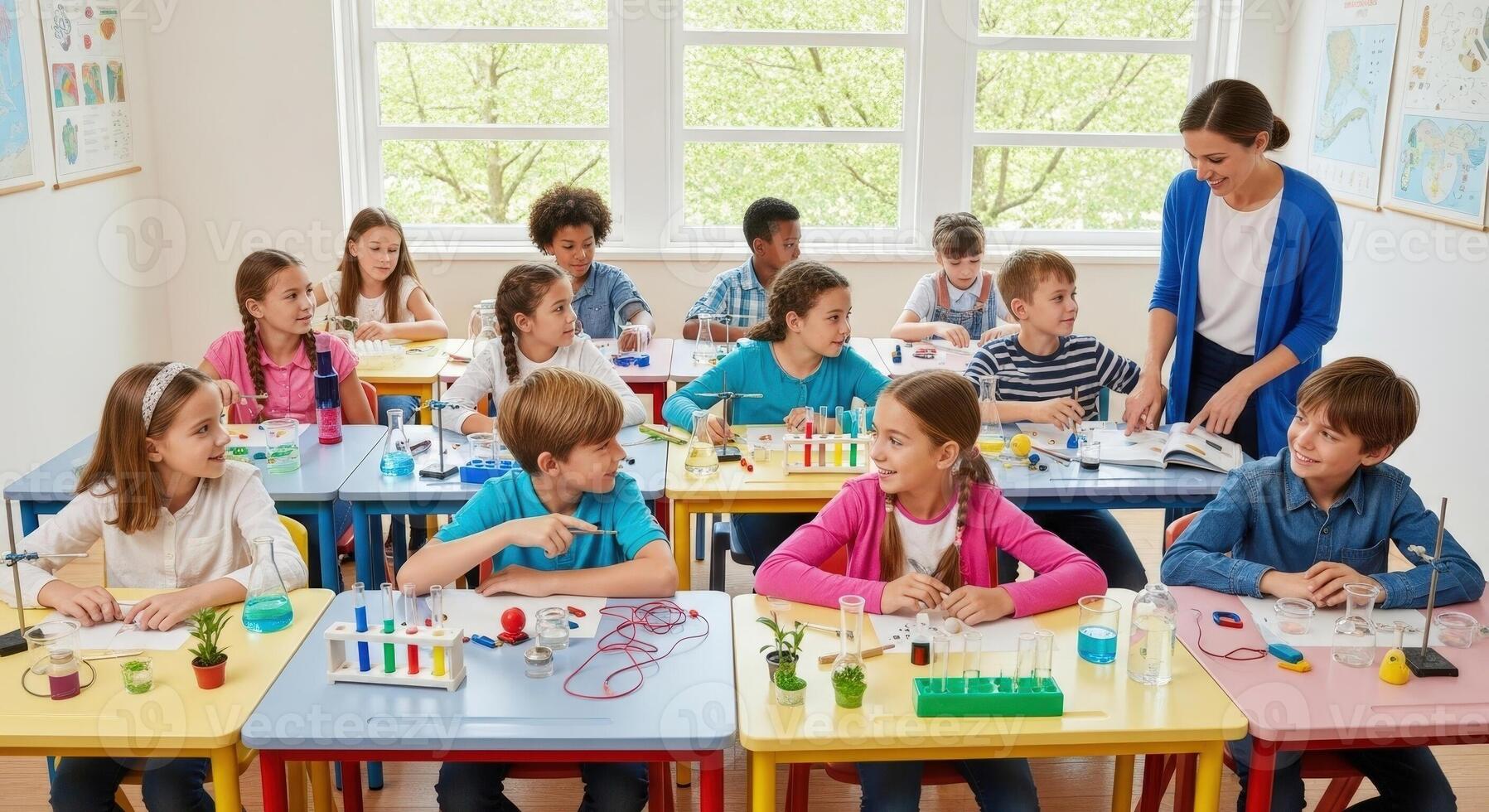 Elementary students learn science during an exciting experiment in the classroom Pro Photo