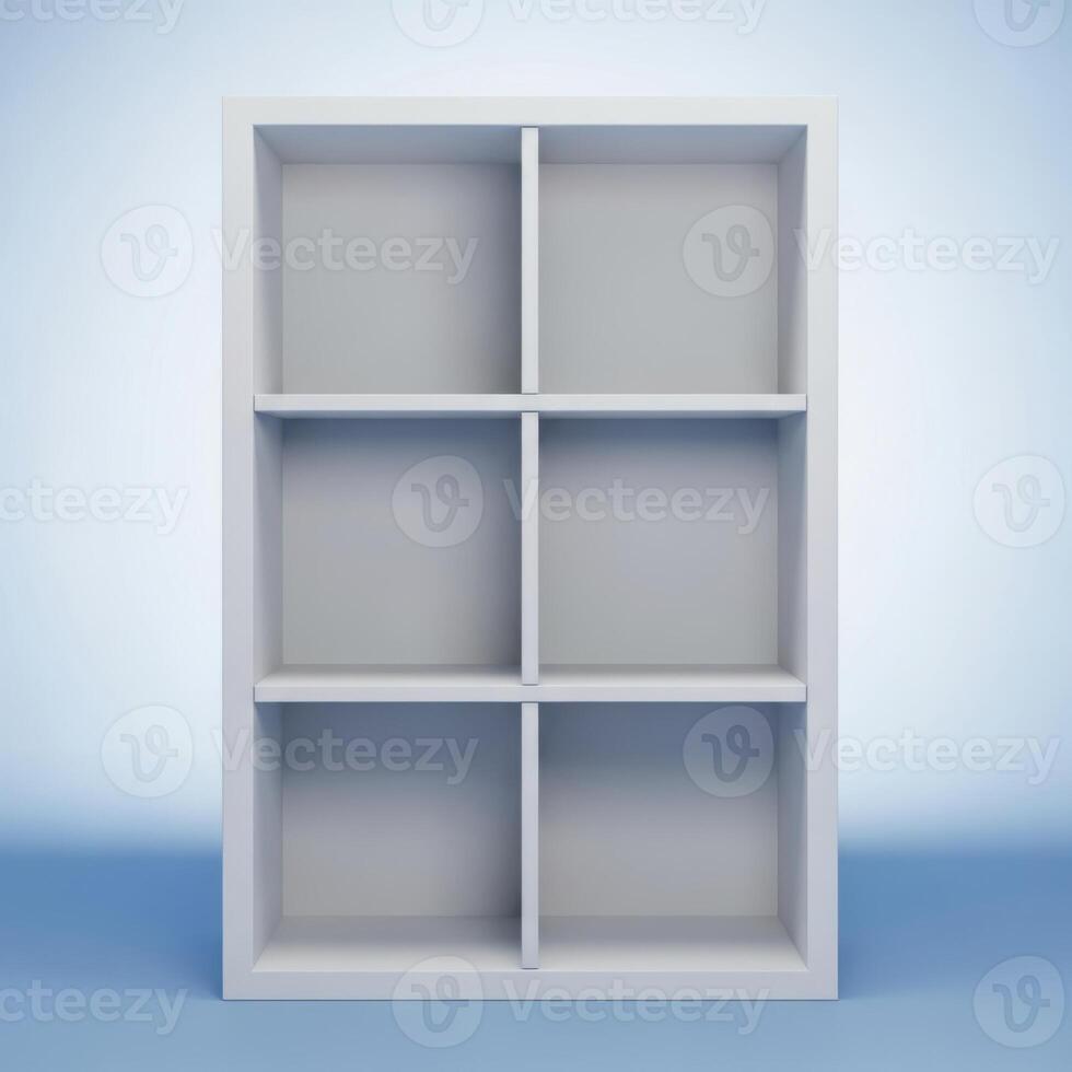 A modern white cube shelving unit with six compartments arranged in two columns and three rows isolated on white background Pro Photo