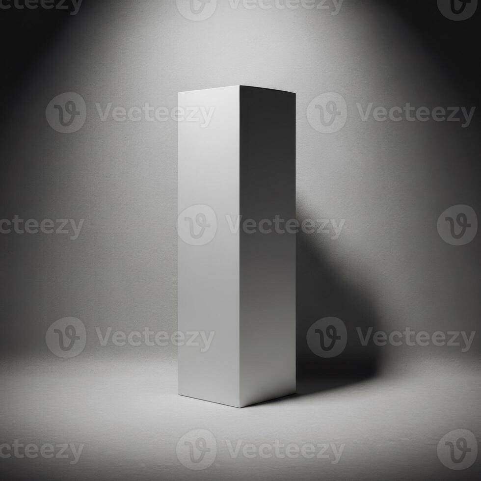 Tall rectangular prism shaped object illuminated by spotlight isolated on white background Pro Photo