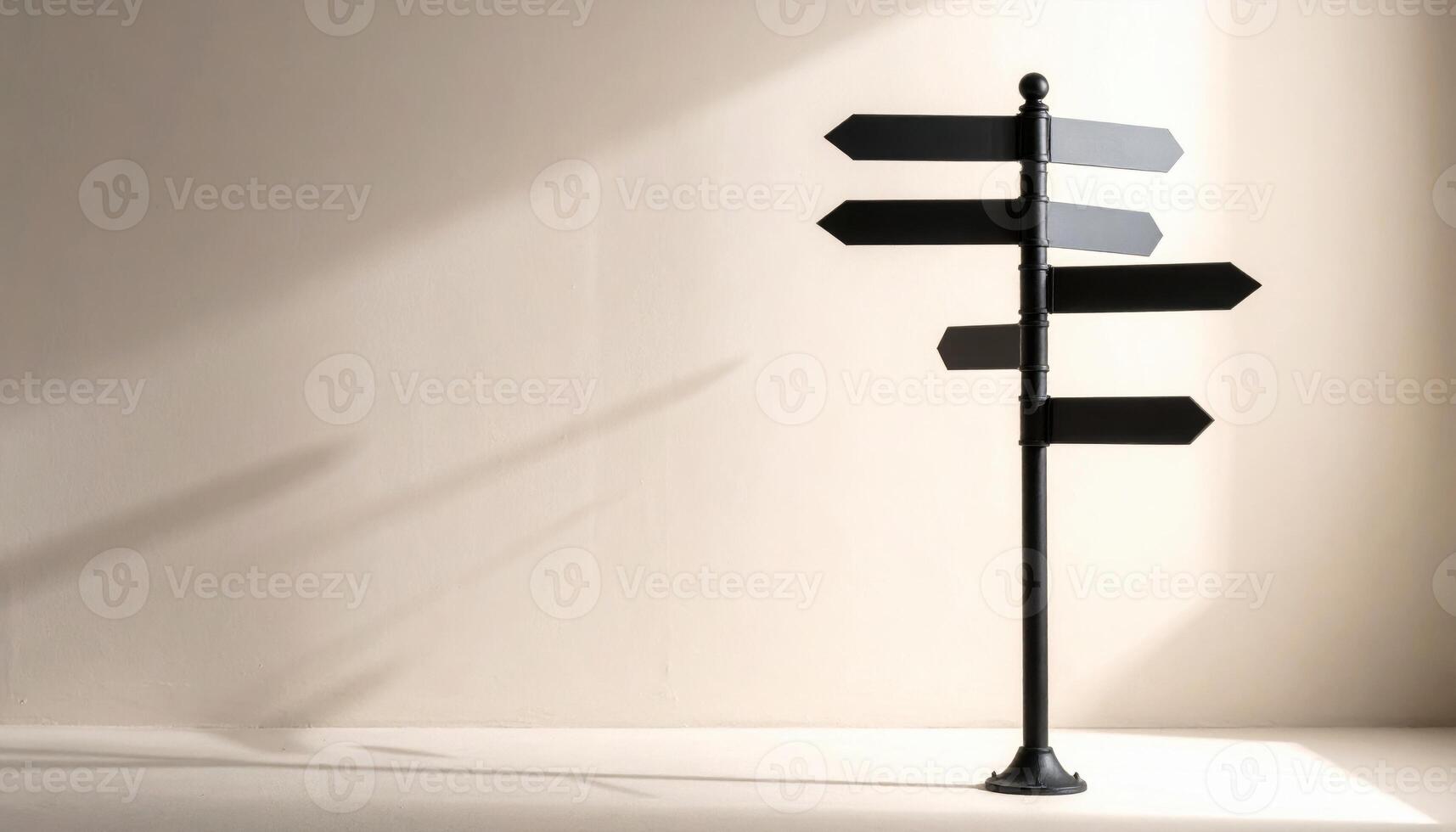 Wayfinding totem silhouette against pale wall open negative space wallpaper background representing signage object suitable for clean architectural branding design Pro Photo
