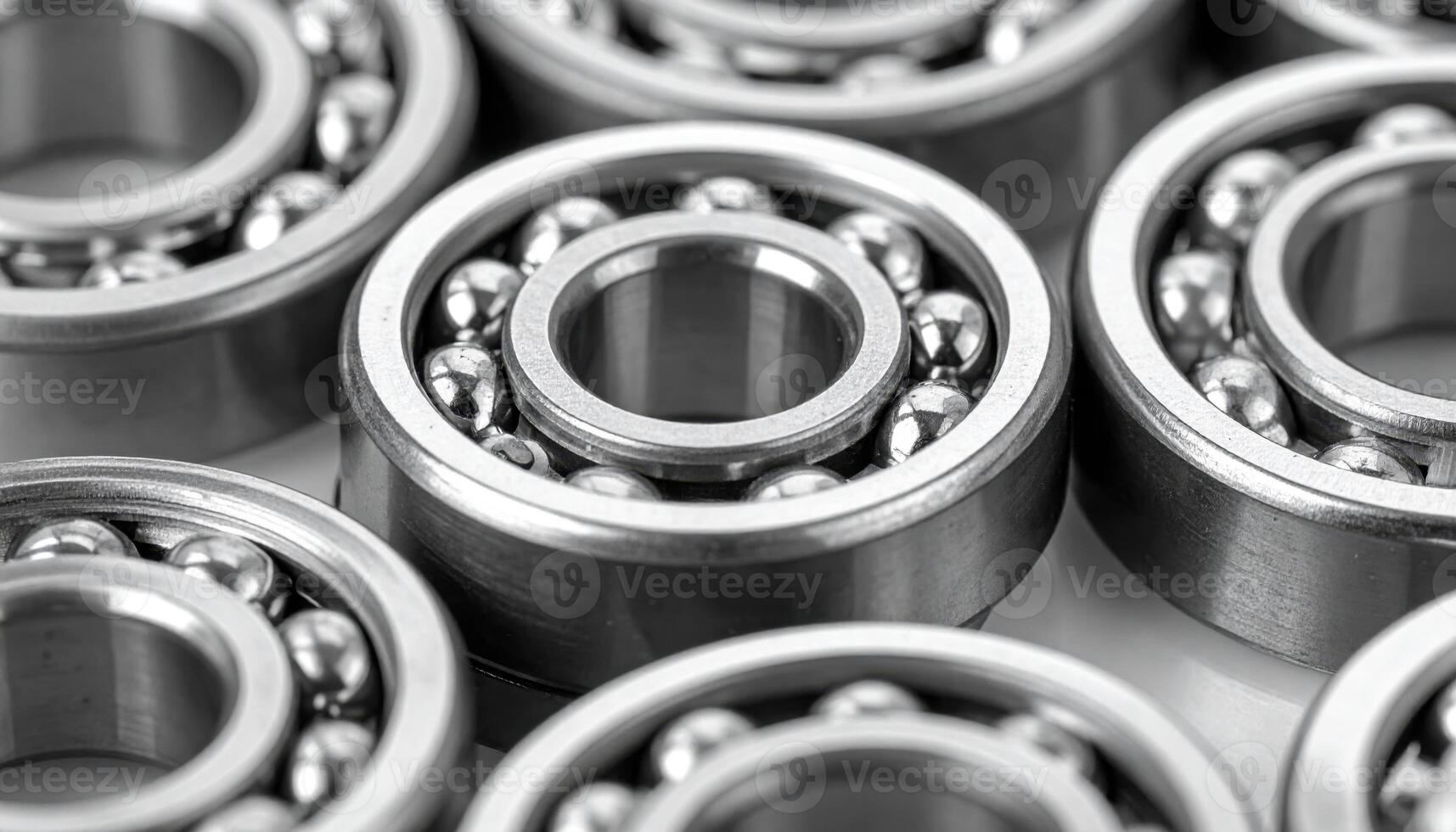 Macro thrust bearing washer set stacked slightly offset satin steel finish clean technical background with copy space for catalog template and engineering layout Pro Photo