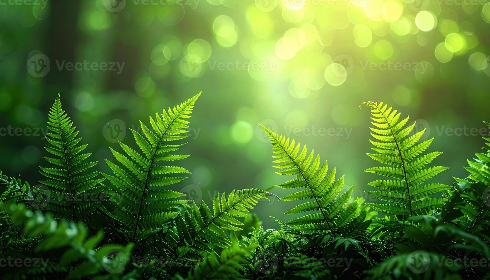 Fern frond bokeh at forest edge deep green gradient lower left copy zone moist atmosphere calm background Pro Photo