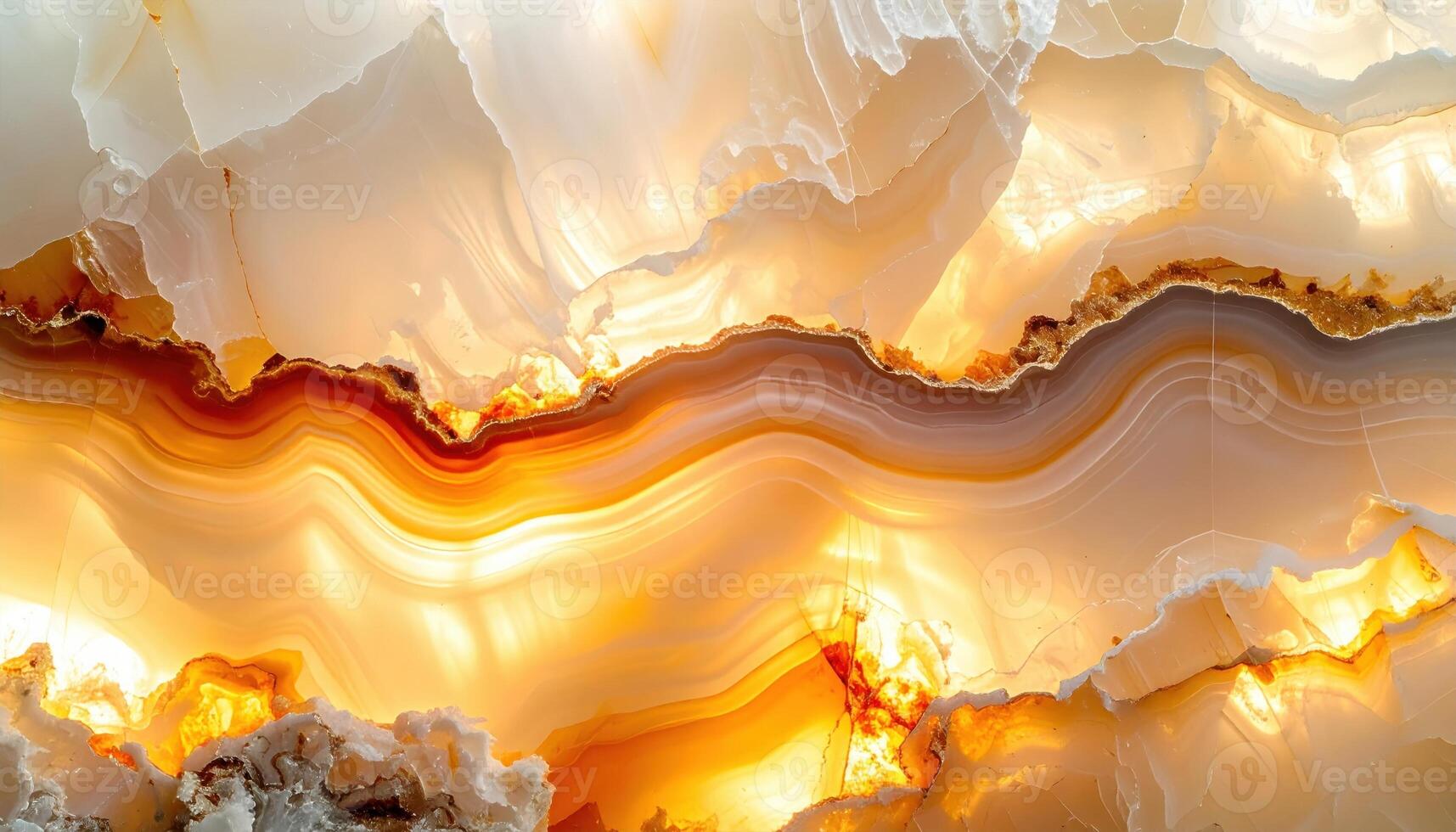 Backlit onyx slab with translucent amber veins soft glow and empty lower third luxurious stone background Pro Photo