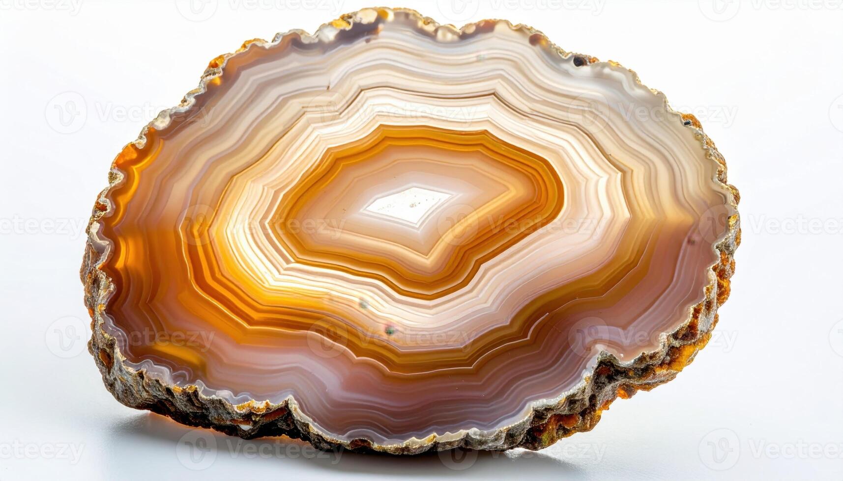 Translucent agate slice with concentric bands on neutral backlight generous right side copy space refined mineral backdrop Pro Photo
