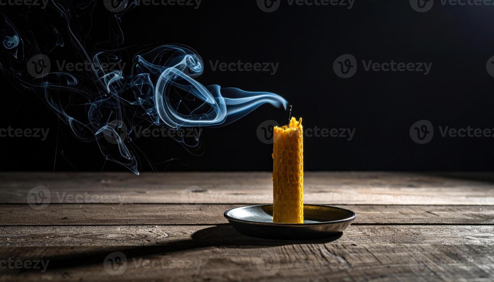 Candle smoke wisps rising after extinguishing moody low key scene with open left side copy space minimal background Pro Photo