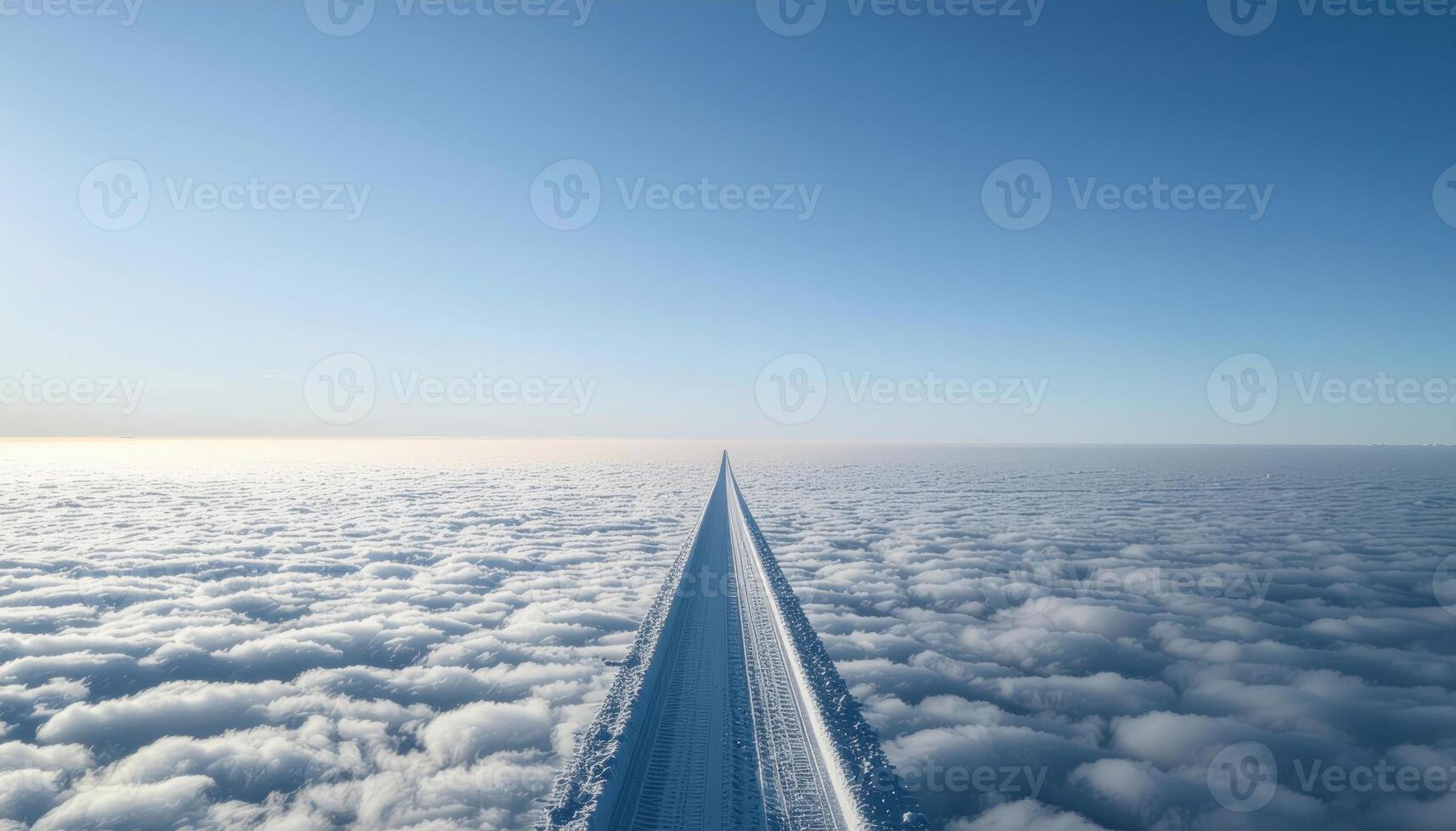 Jet contrail shadow cast on a thin cloud sheet minimalist horizon and ample center copy field representing sky geometry suitable for aerospace editorial and modern design Pro Photo