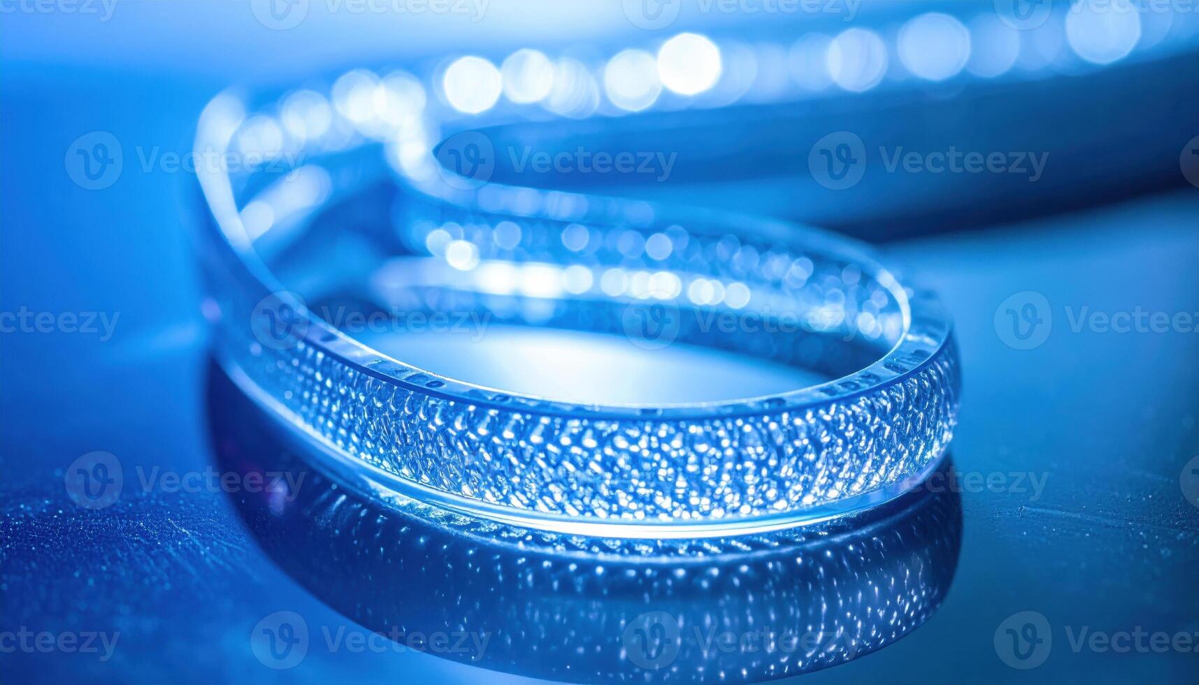 Microfluidic serpentine channel on clear polymer backlit glow precise lines with left side copy area clean lab tech background Pro Photo