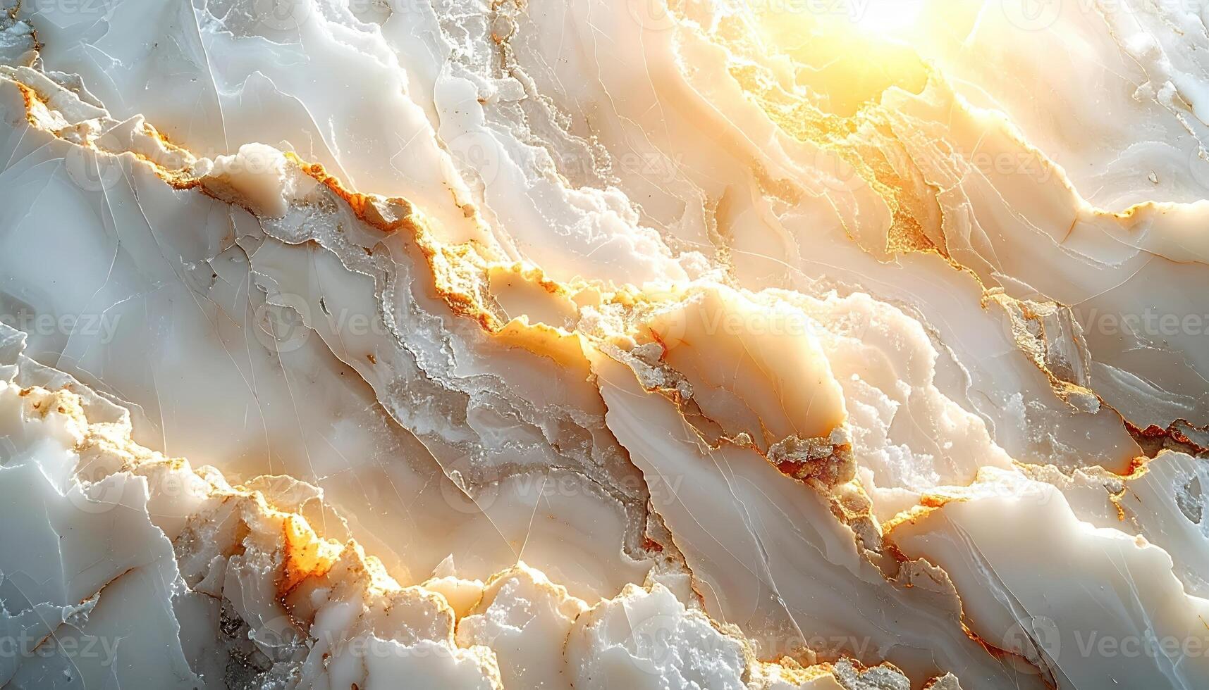 Elegant marble background texture shows flowing white and beige stone patterns with soft gold light enhancing the natural details, creating a warm aesthetic. Pro Photo