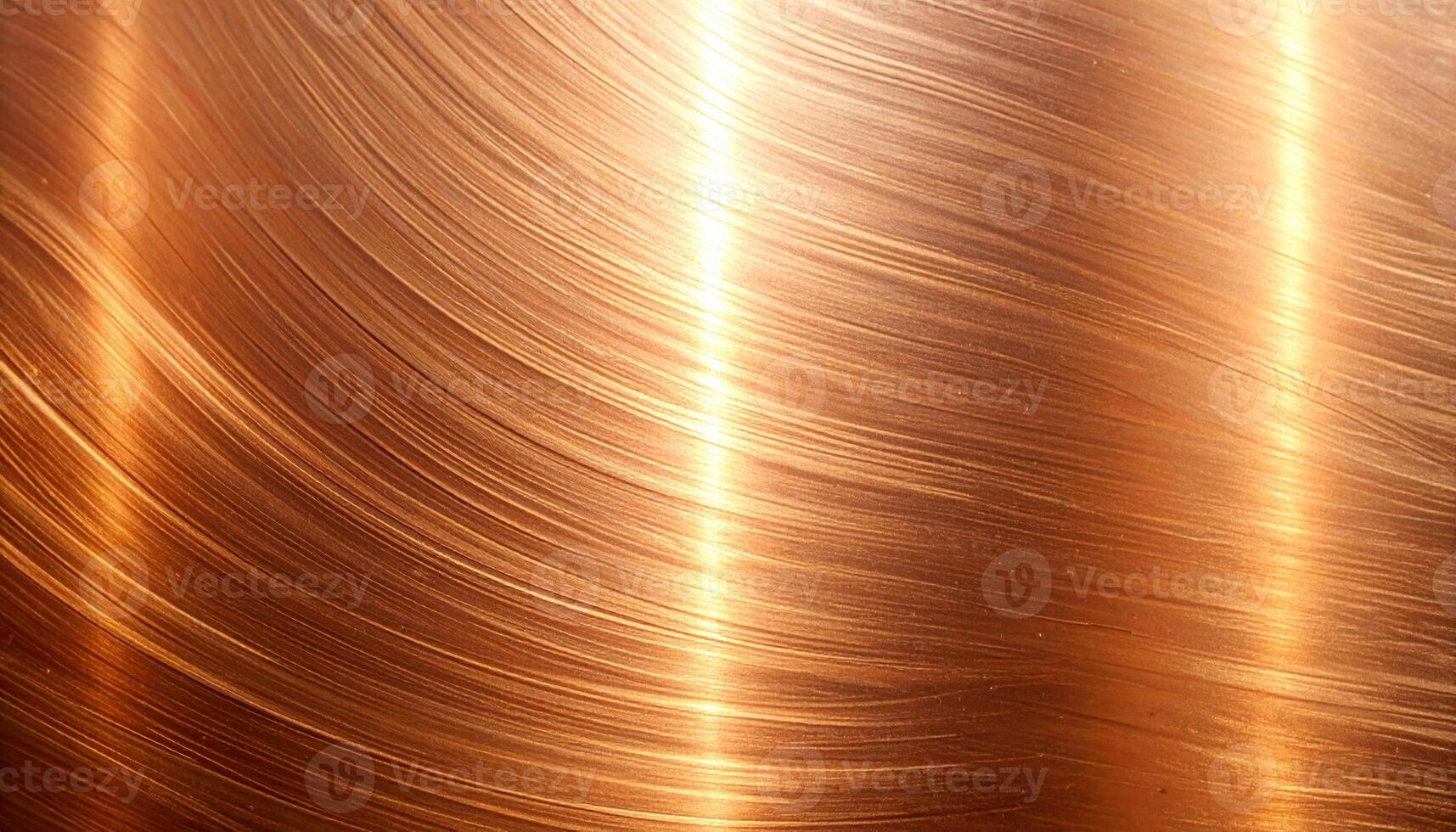 Shiny copper texture with brushed metal finish showing bright reflections and subtle curves, creating an abstract and industrial feeling background element. Pro Photo