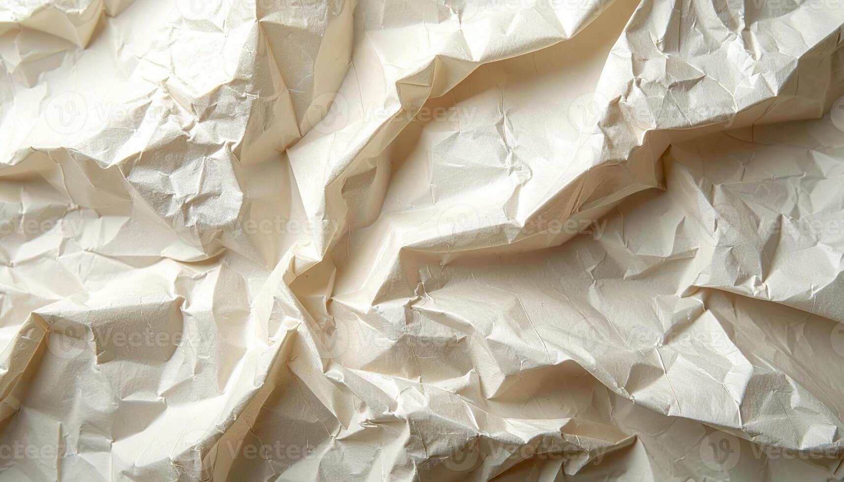 The textured surface of crumpled white paper creates an abstract pattern of light and shadow, forming unique shapes in this detail close up shot of the document. Pro Photo