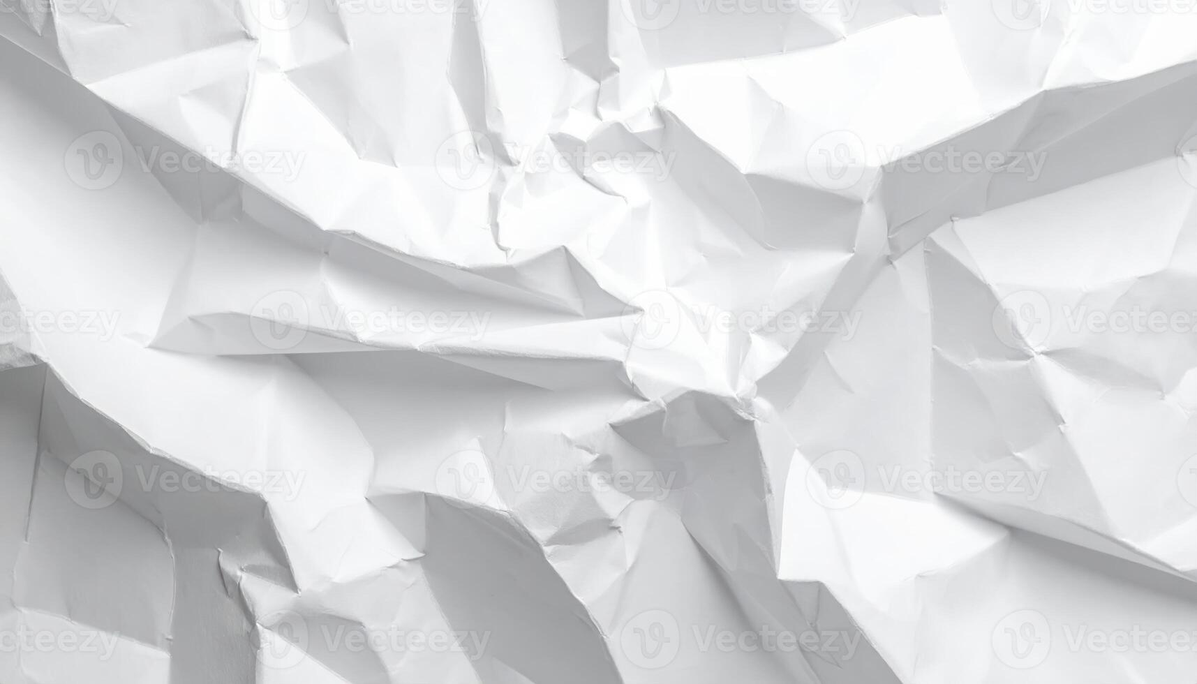 An abstract and textured view of white crumpled paper reveals a chaotic pattern of folds, creases, and shadows creating an interesting, artistic background detail. Pro Photo