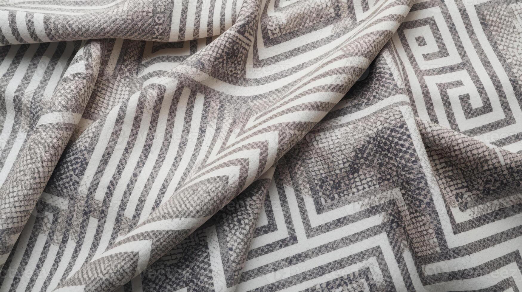 Close up of decorative patterned fabric with intricate geometric shapes, captu the material's texture and design elements creating visual interest and depth. Pro Photo