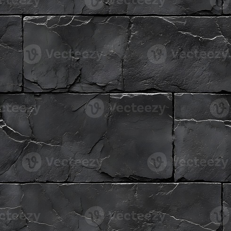 Dark gray stone blocks create a rustic textured wall surface with shadows in a close up seamless pattern. Pro Photo