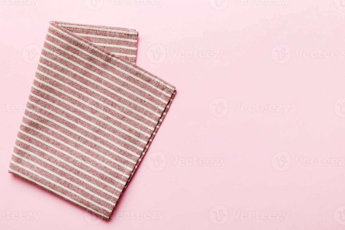 top view empty kitchen napkin isolated on table background. Folded cloth for mockup with copy space Pro Photo