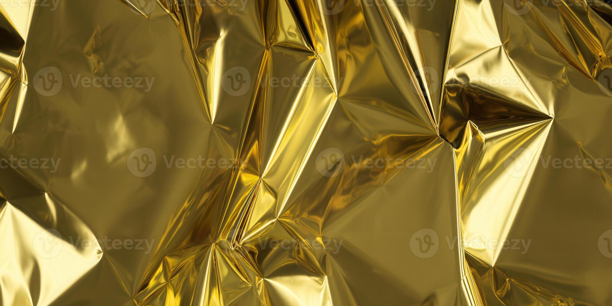 Close-up of crumpled gold foil creating a reflective, luxurious texture and abstract background. Pro Photo