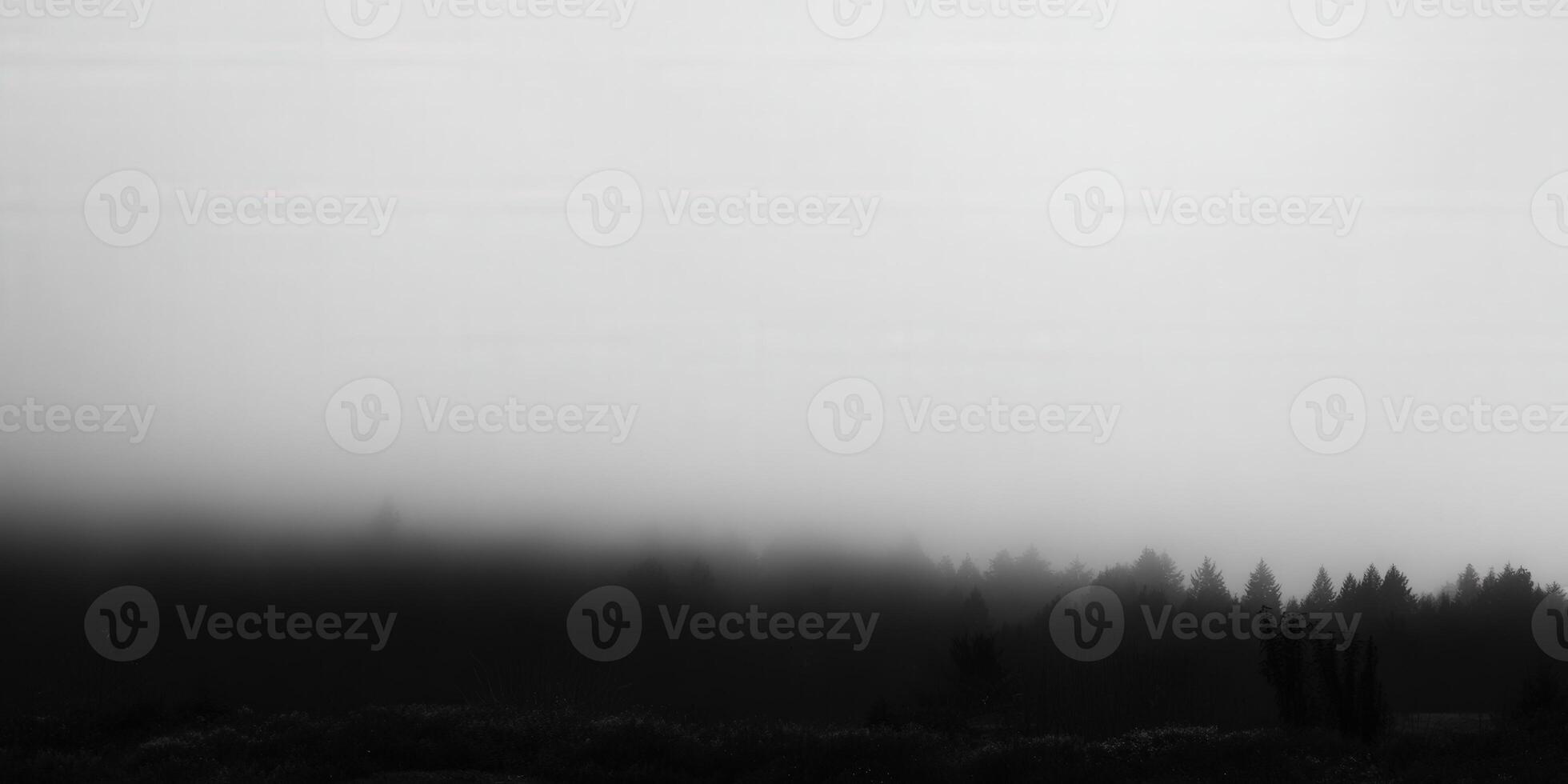 The dense fog obscures a dark forest, creating a mysterious and tranquil scene in monochrome. Pro Photo