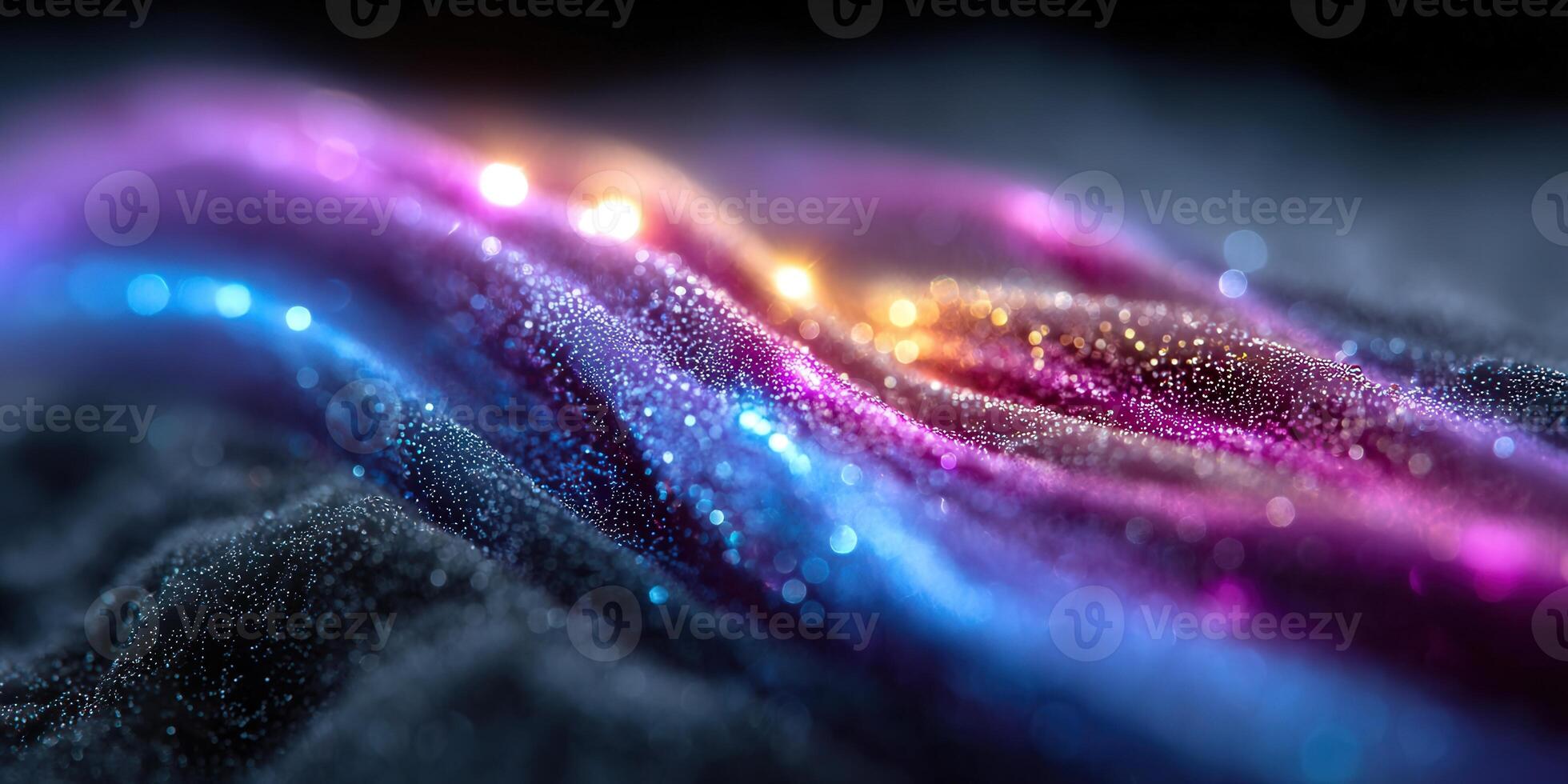 A vibrant abstract artwork showcasing luminous waves with a sparkling particle effect. Pro Photo