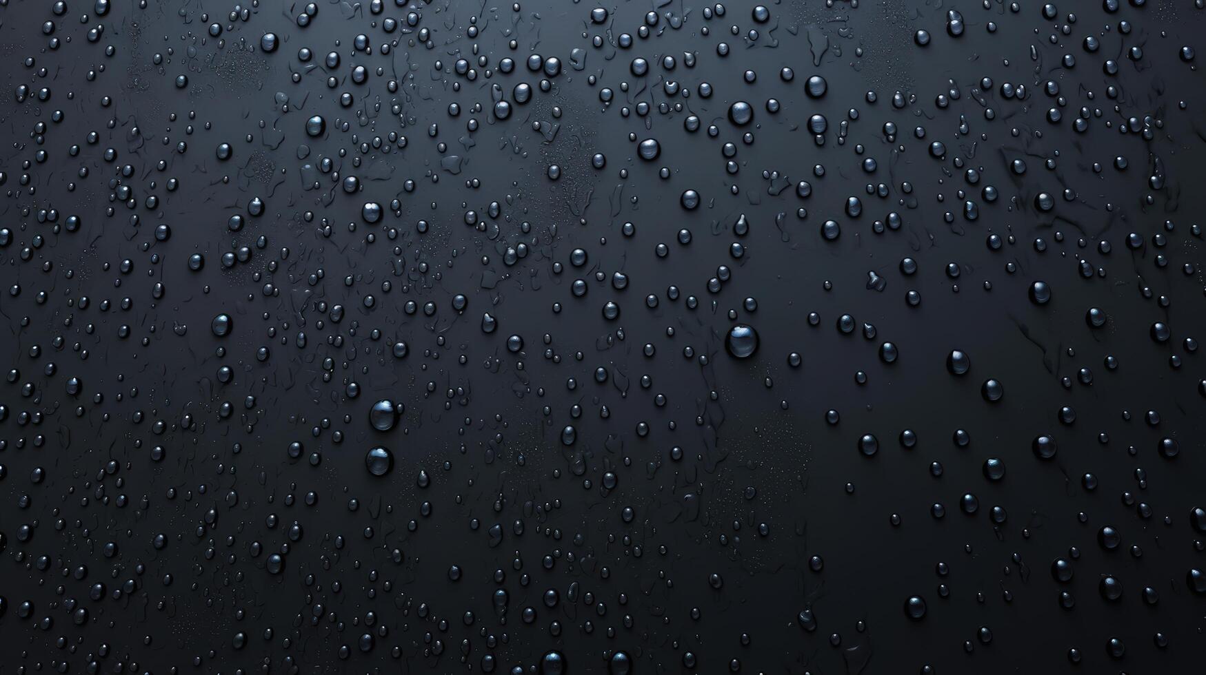 Closeup macro view of dark water droplets on a textured surface, abstract background photo