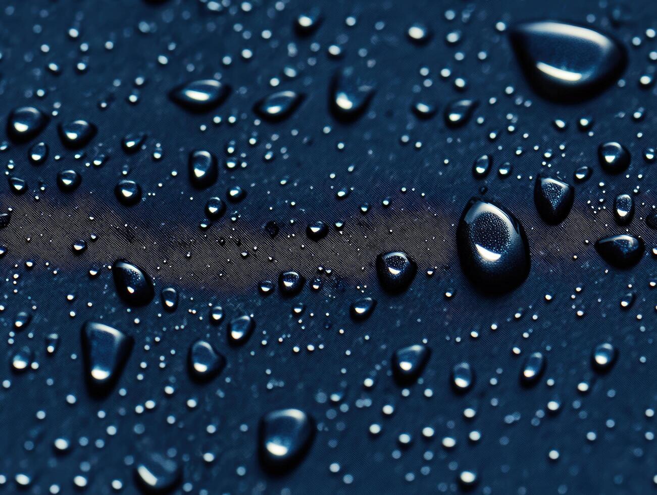 Detailed texture of a dark blue surface covered with small and large water droplets, creating a visually appealing abstract composition photo