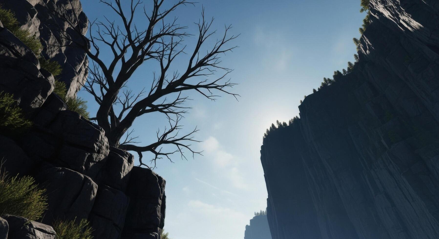 A tree stands alone in the middle of a cliff photo