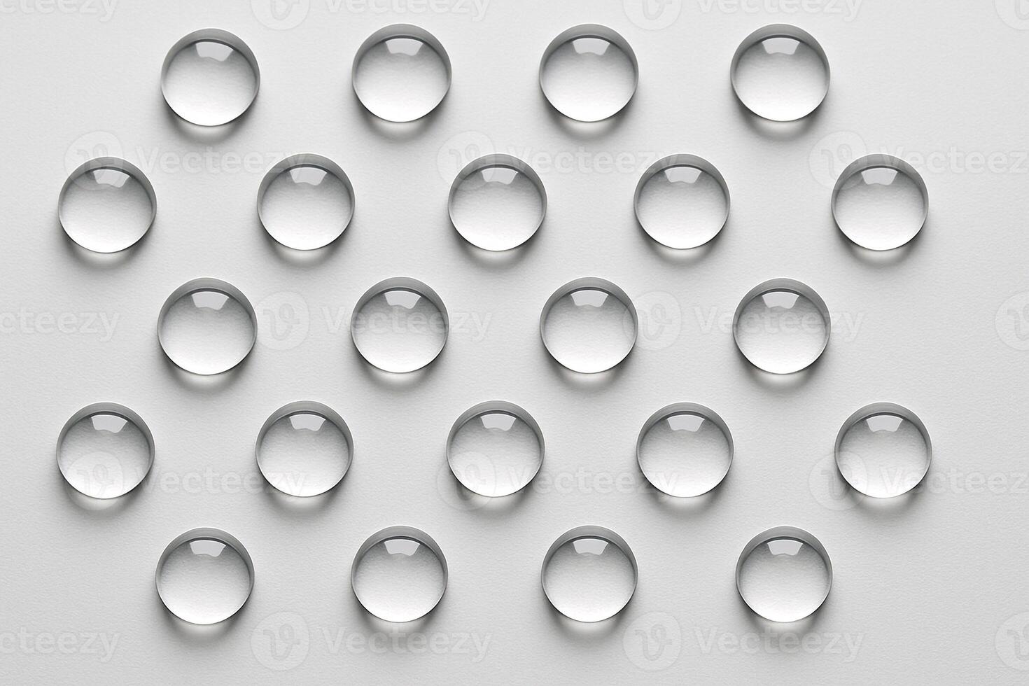 Off white background with arranged transparent droplets in precise symmetrical rows. Pro Photo