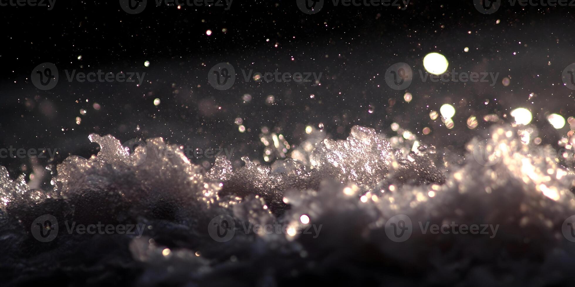 Bright water splashes and shimmering droplets illuminate a dark abstract background creating a magical effect Pro Photo