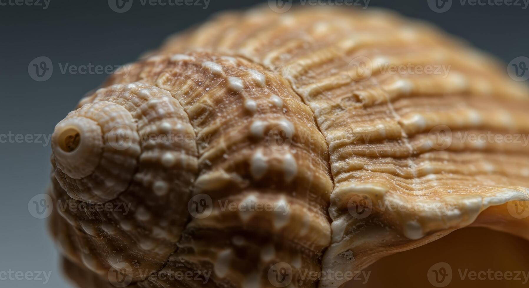 Macro close up of a single seashell showing intricate spiral and textured surface Pro Photo