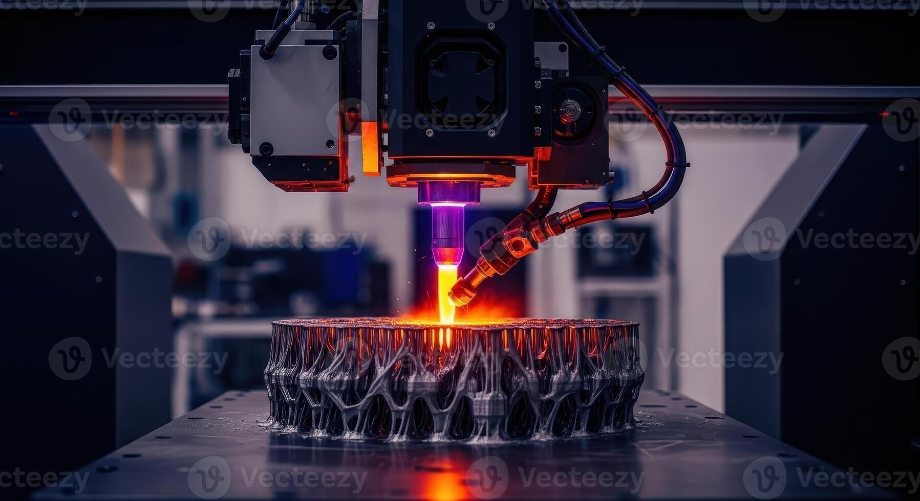 Large scale industrial 3D printer constructing complex metal component with bright laser Pro Photo
