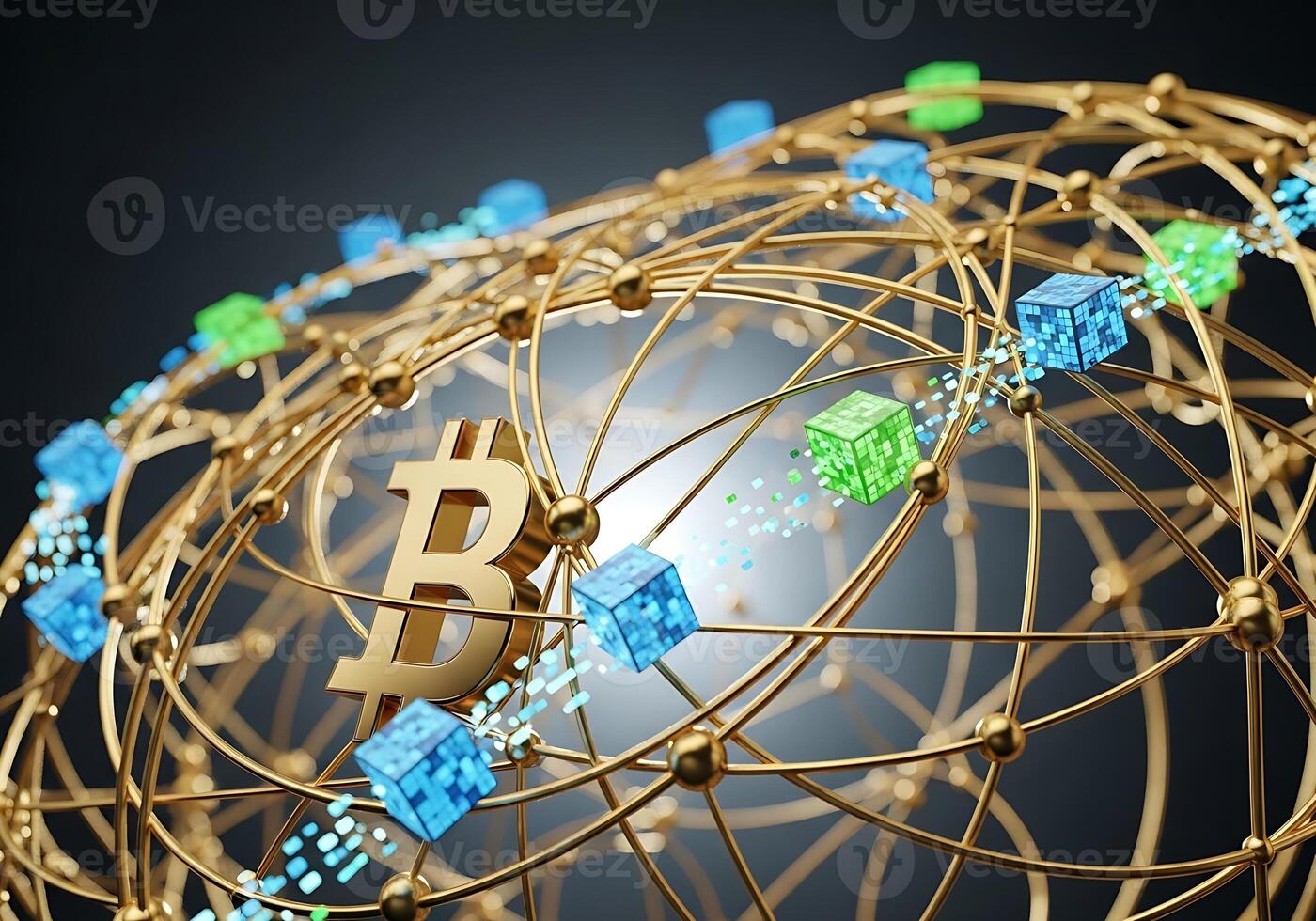 Global Bitcoin Network Blockchain Cubes Connected on Golden Globe Pro Photo