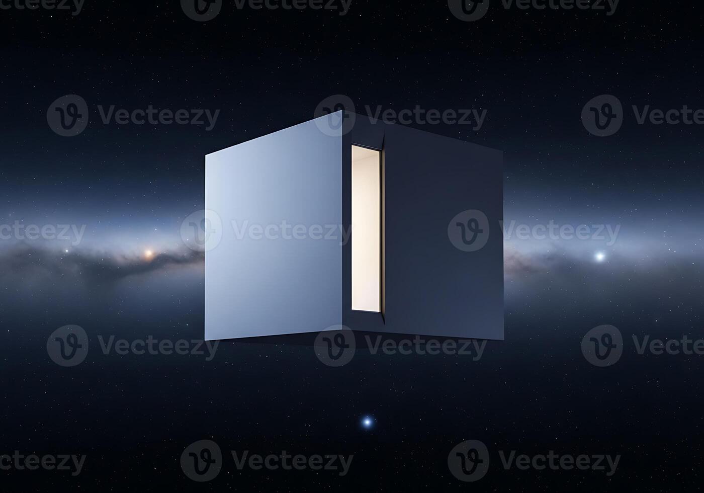 Futuristic Cube Habitat Floating in Cosmic Nebula with Stars and Galaxies Representing Space Exploration Isolation and Advanced Architecture Pro Photo