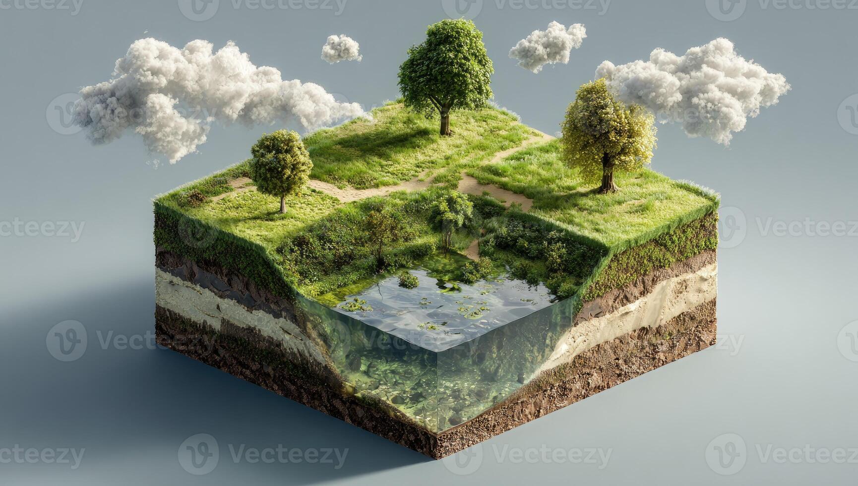 An image of a 3d rendering of a forest and a lake Pro Photo