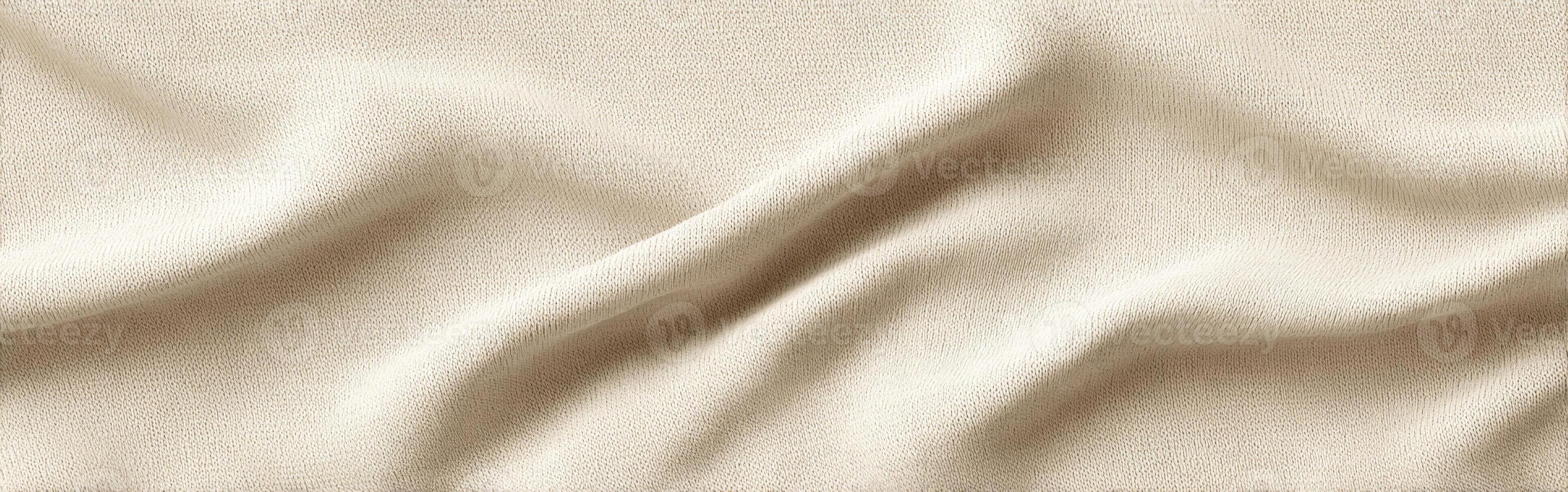 A soft beige fabric lies gracefully on a flat surface, displaying delicate folds and smooth textures. The gentle curves highlight the fabrics quality and warmth Pro Photo