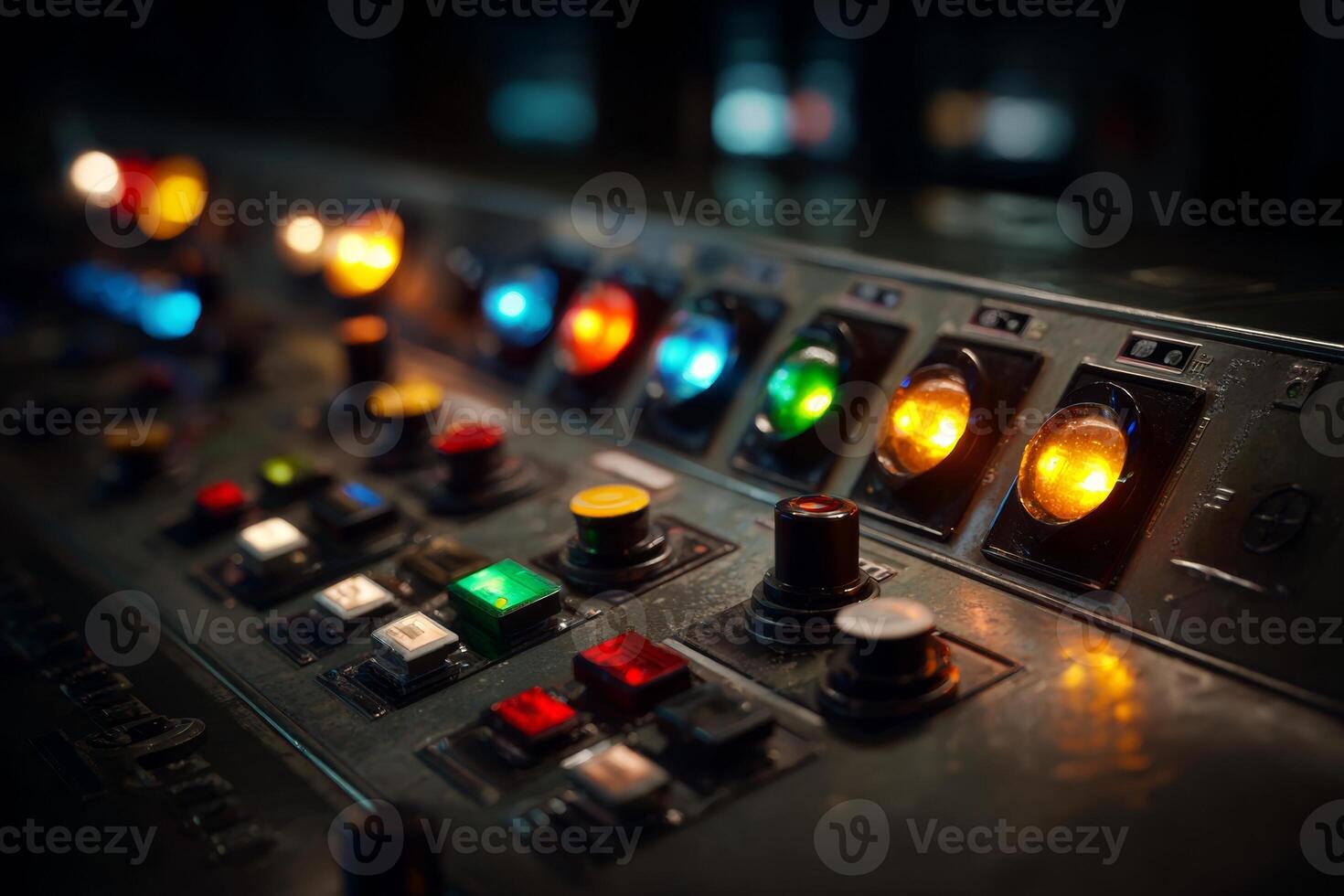 X-ray control panel glows softly with various buttons and dials, indicating readiness for operation in a medical setting during evening hours, showcasing advanced technology Pro Photo