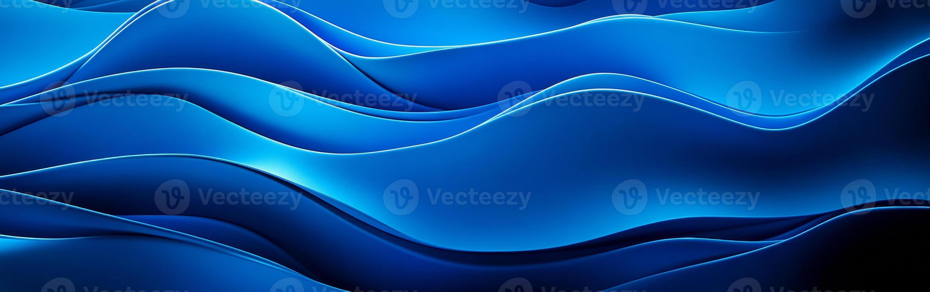 The design features smooth, three-dimensional blue waves on a clean blue backdrop, offering a sense of depth and tranquility in a minimalist art style for high-quality displays Pro Photo