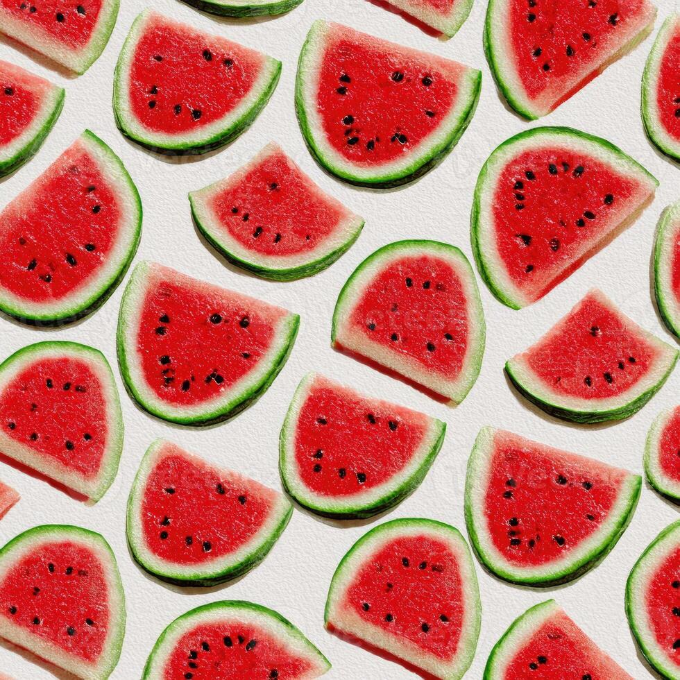 Sliced watermelon pieces arranged on white background in a repeating pattern Pro Photo