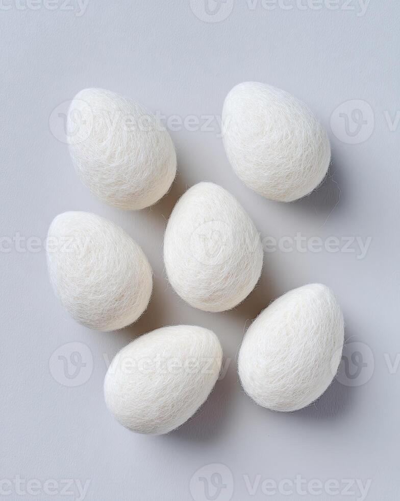 Six white oval objects with fibrous texture, arranged casually on a plain gray background Pro Photo