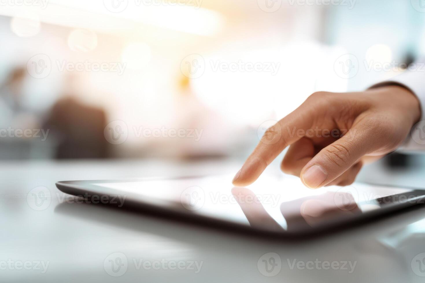 Person using a tablet device. Digital interactions and activities. Man holding a pad. Remote learning, social distance working, ordering buying online, reading e book. Close-Up view, Modern Technology Pro Photo