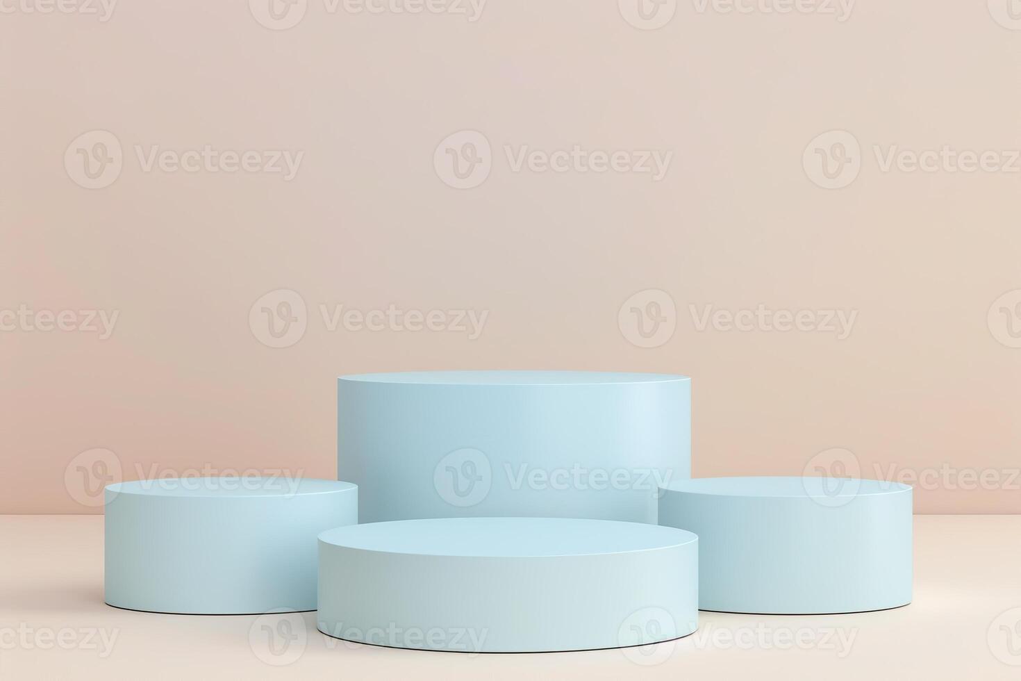 Four Round Podiums for Cosmetic, Soap, Items Presentation. Abstract Minimal Geometric Pedestal. Cylinder Forms, Soft Shadow. Product Object Show Scene. Showcase, Display Case. Beige Stand Backdrop Ad Pro Photo