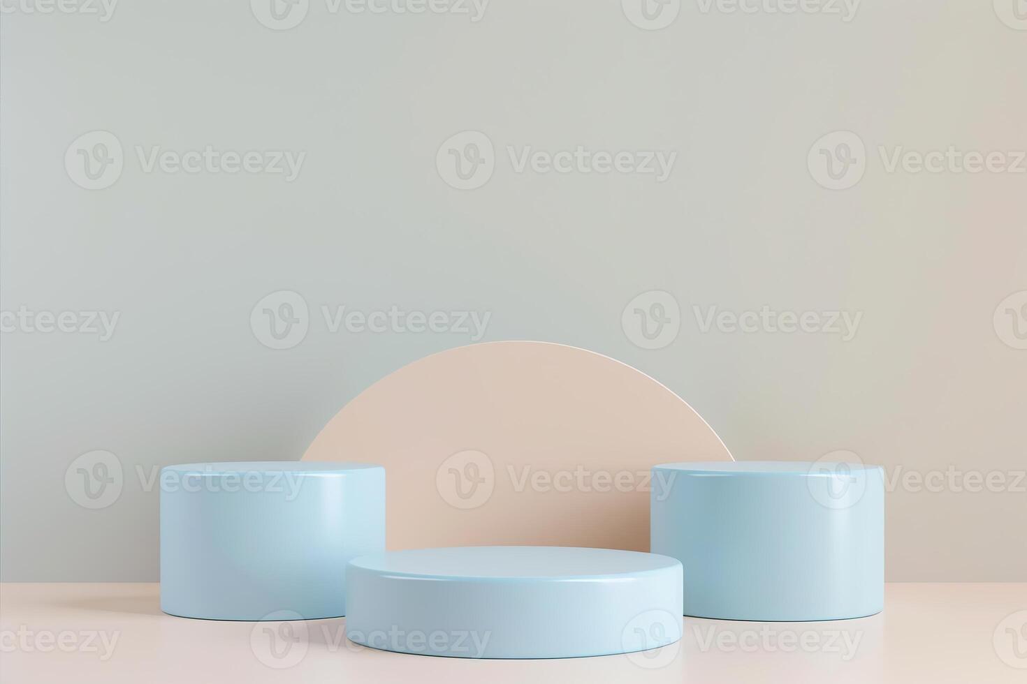 Three Round Podiums for Cosmetic Soap, Items Presentation. Abstract Minimal Geometric Pedestal. Cylinder Forms, Soft Shadow. Product Object Show Scene. Showcase, Display Case. Beige Stand Backdrop Ad Pro Photo