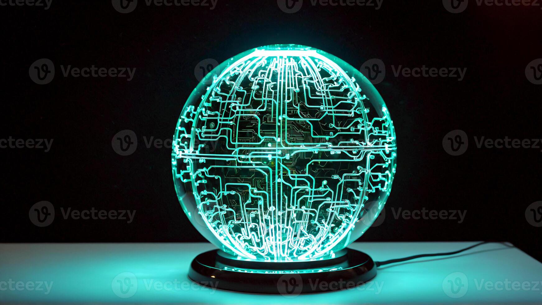 Futuristic glowing orb with intricate circuit patterns adds a modern tech vibe to any project, perfect for innovation, technology, and cutting-edge themes Pro Photo