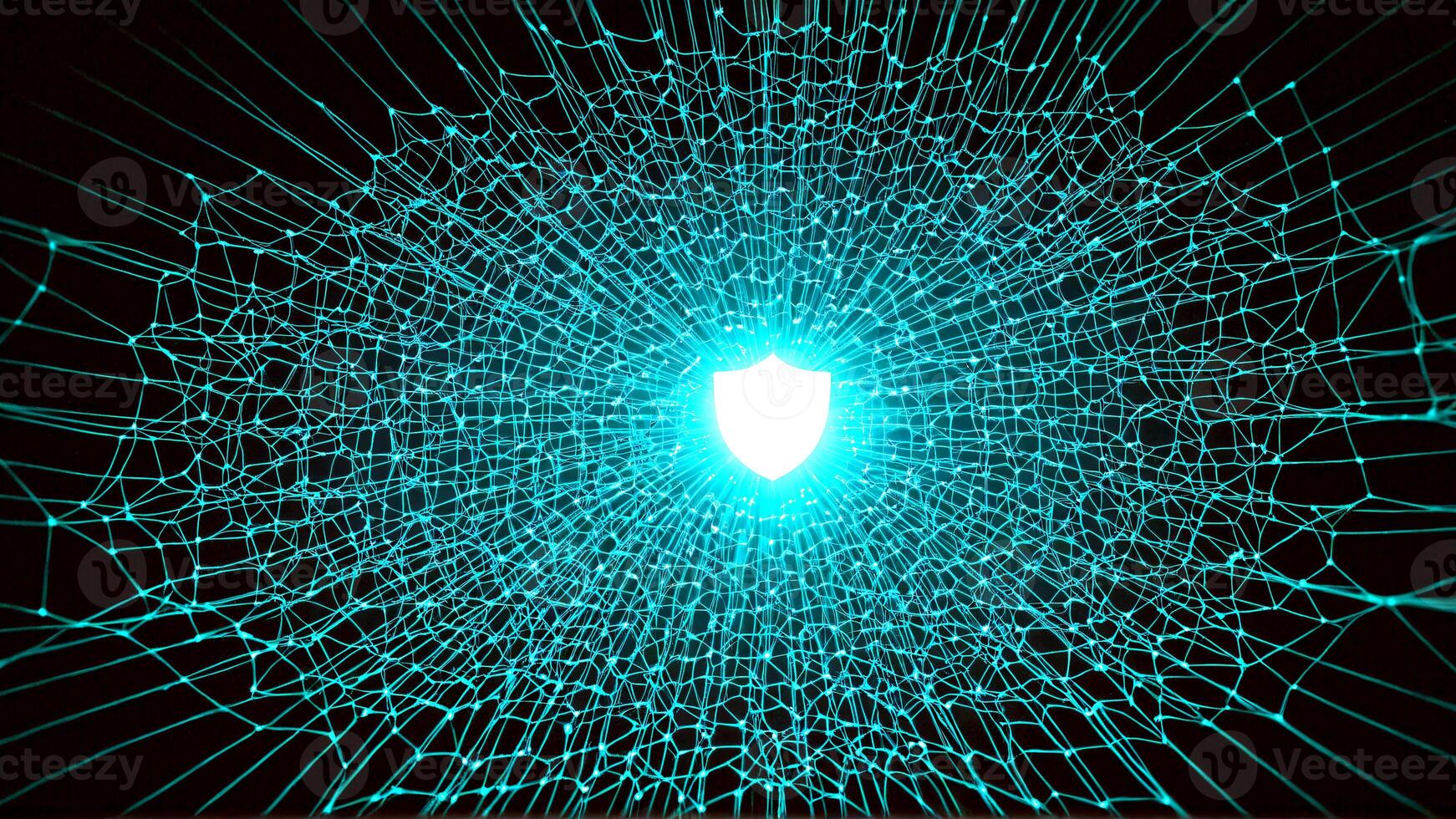 Digital shield glows brightly at the center of a luminous interconnected network, symbolizing secure data and robust cyber protection Pro Photo